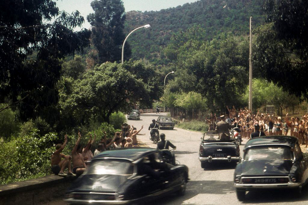 Le Général de Gaulle, à bord de sa Simca Chambord immatriculée 5 PR 75,